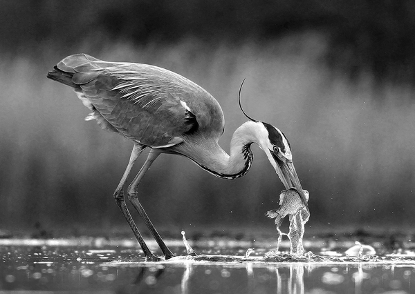 Grey heron fishing