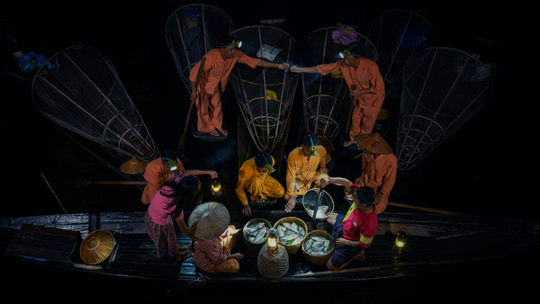 Inle fisherman and purchaser