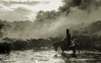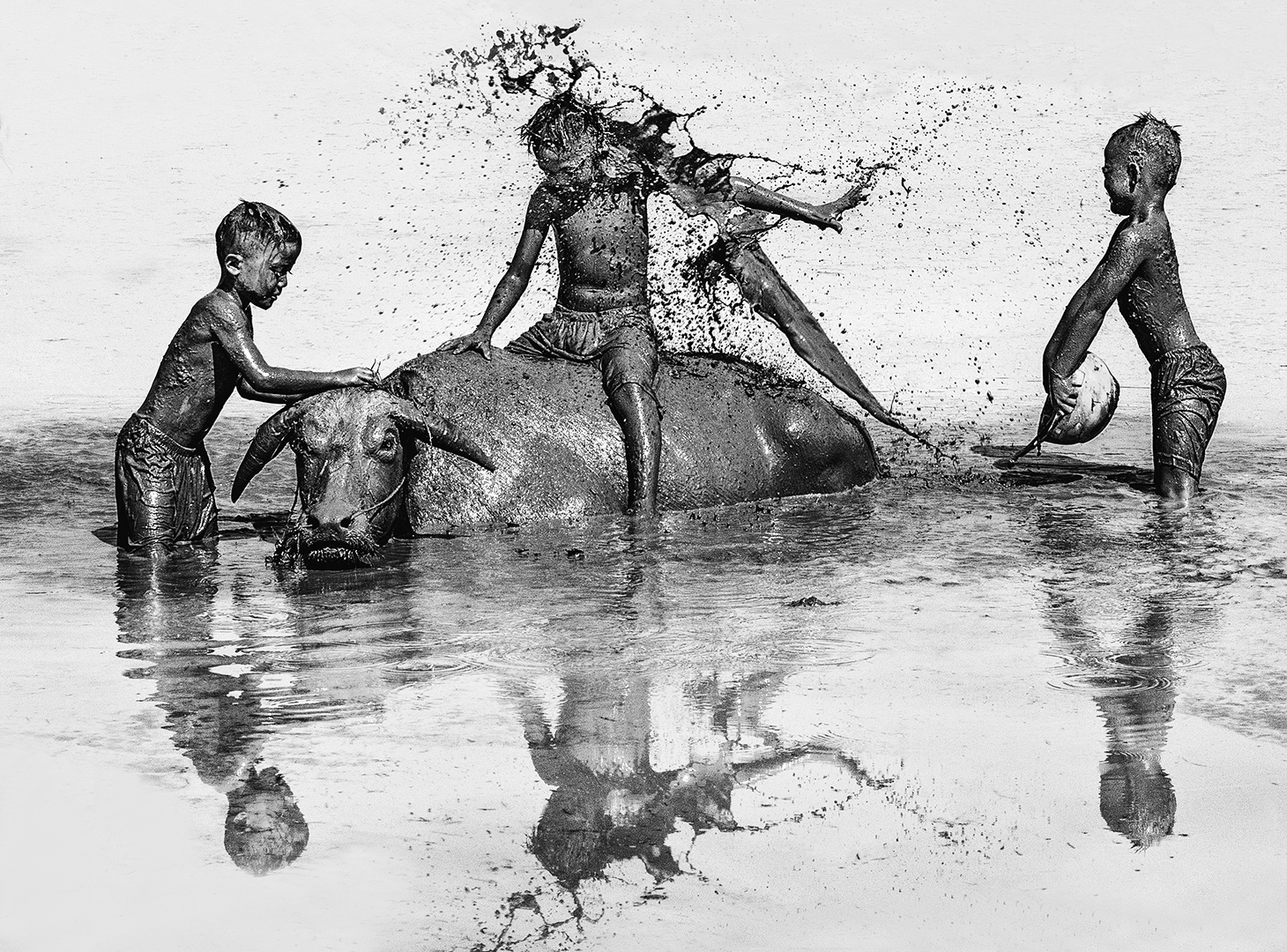 Playing mud with buffalo