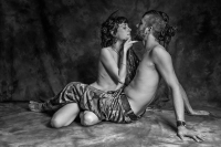 adult and two young bw