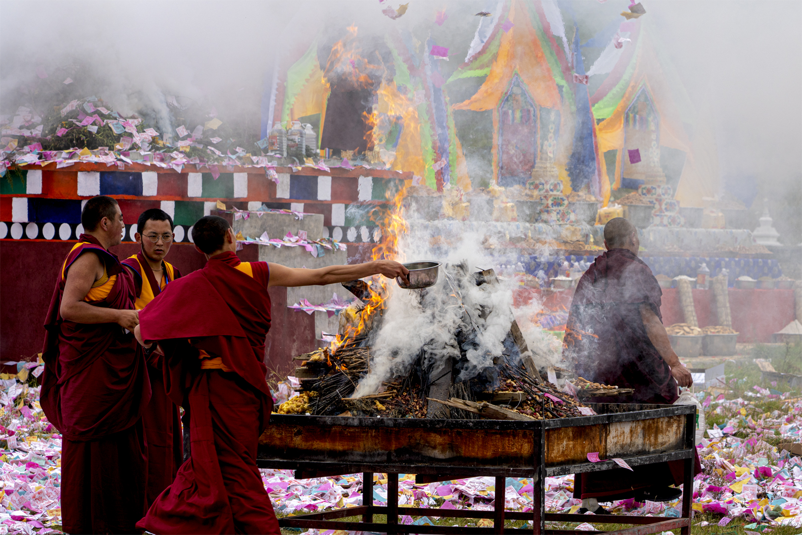 Three priests between temples