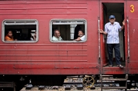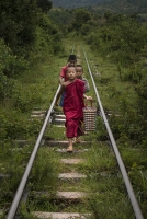 Monje en la via del tren