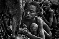 Surma boy milking a cow-Ethiopia