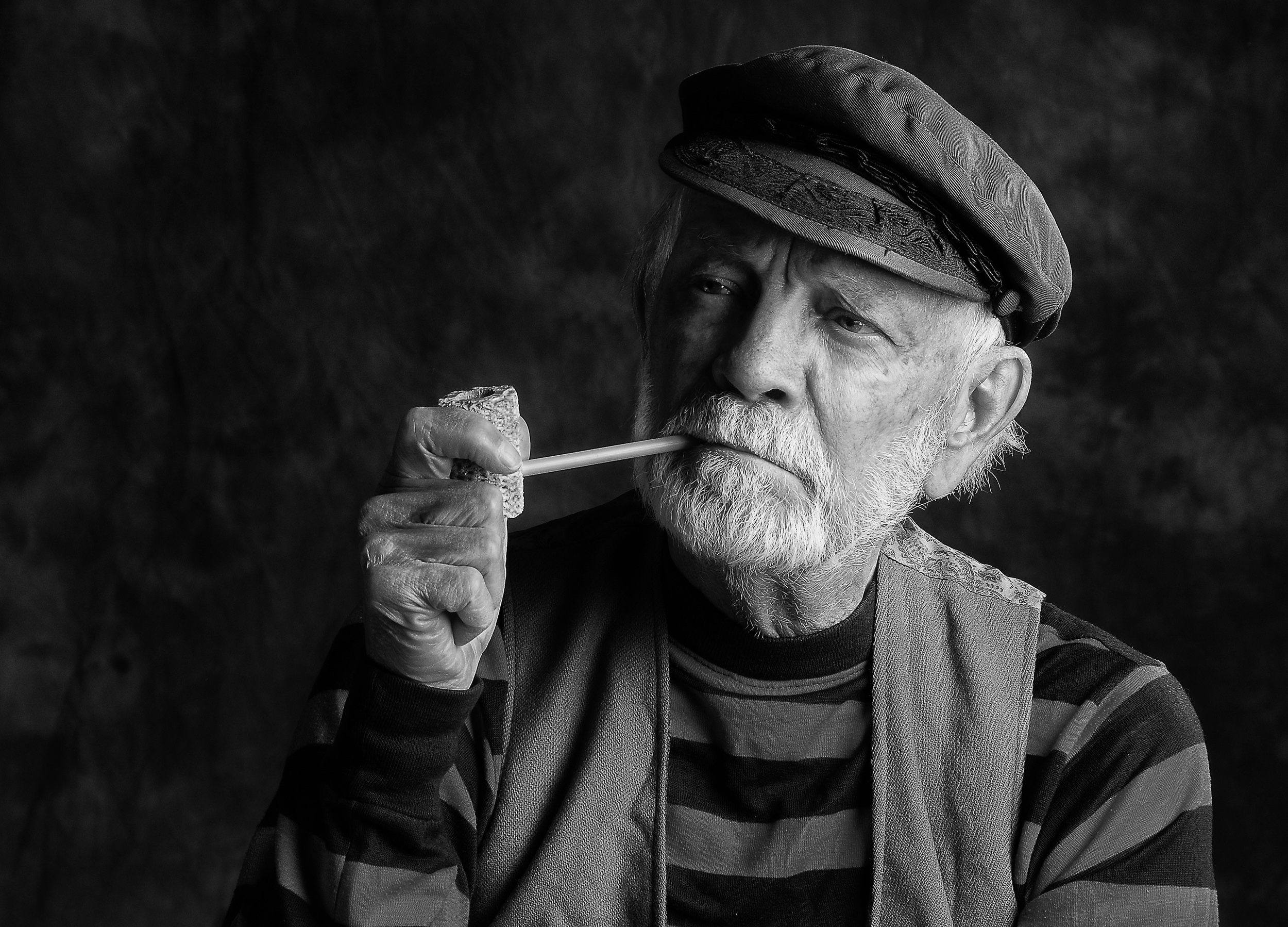 Old man with raven