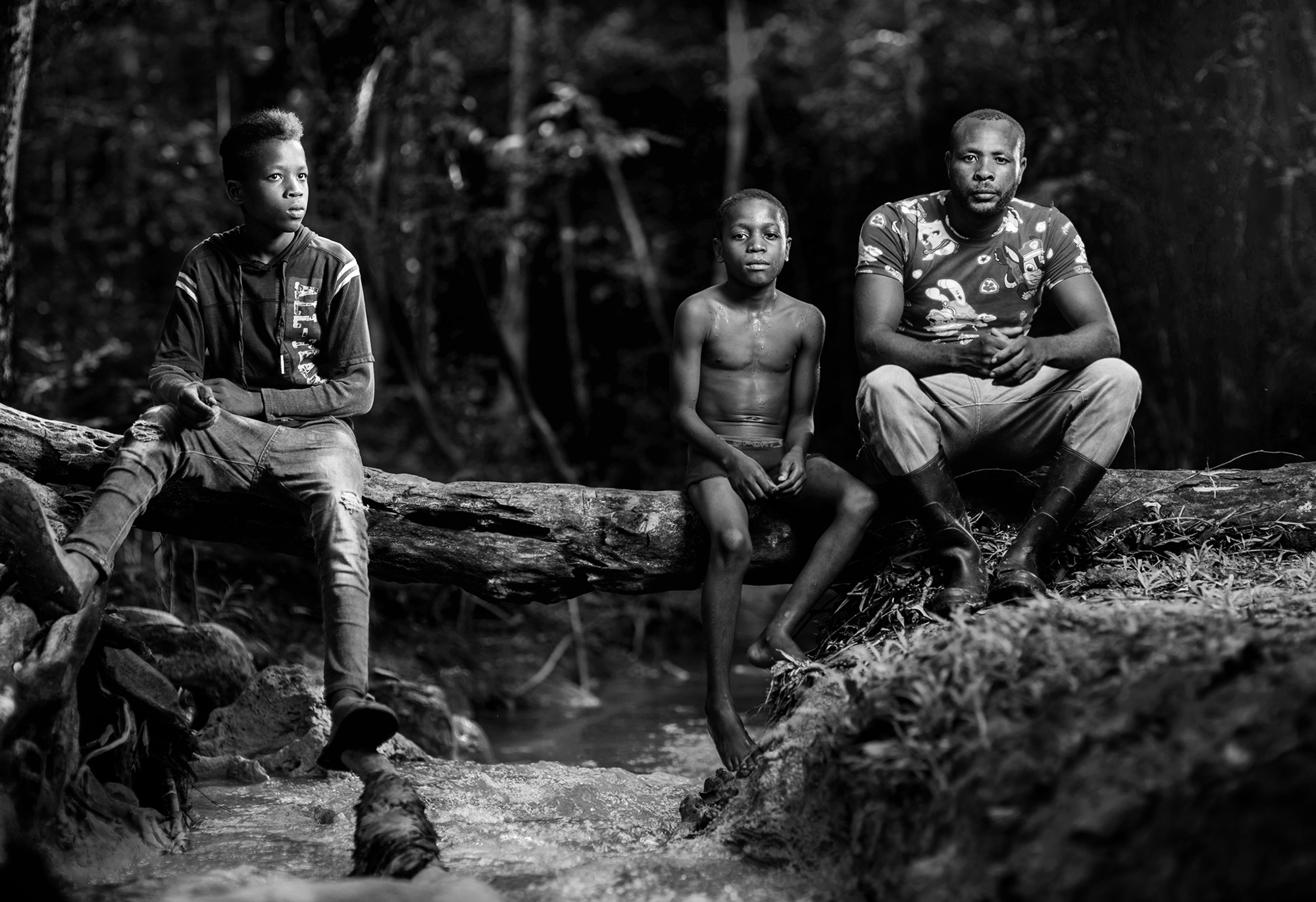adult and two young bw