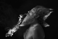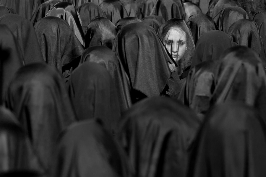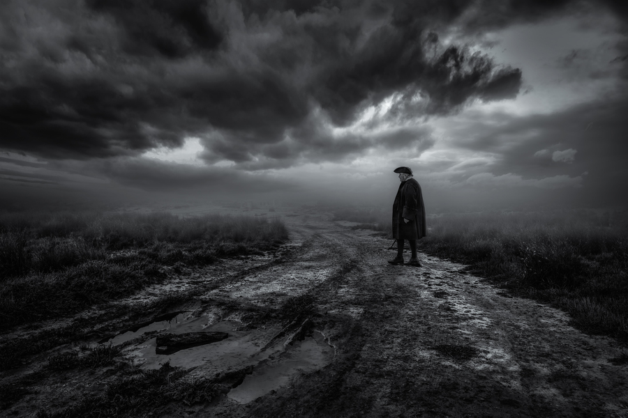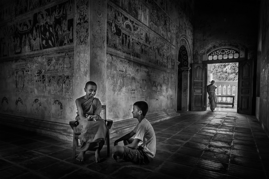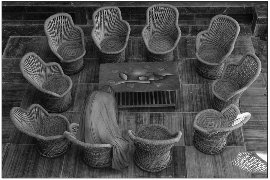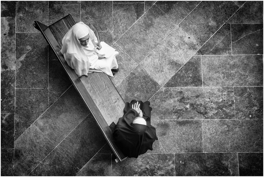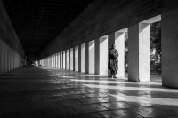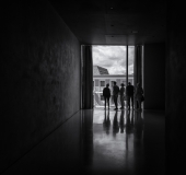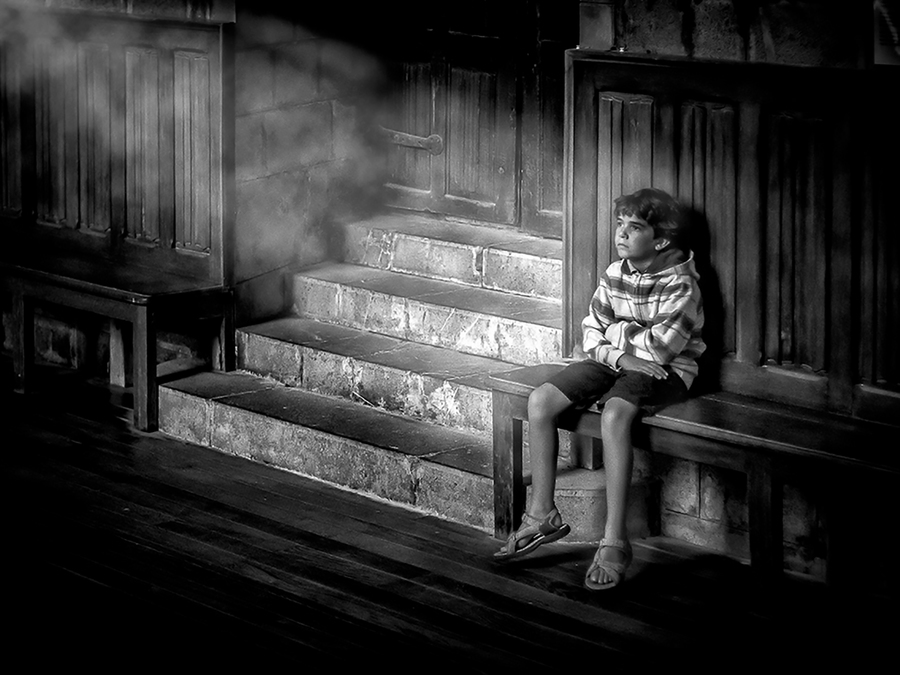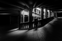 A monk in a tunnel of shadows