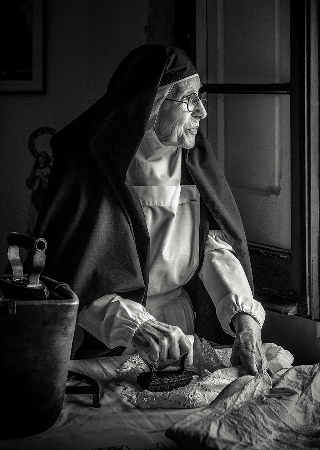 Planchando en la ventana