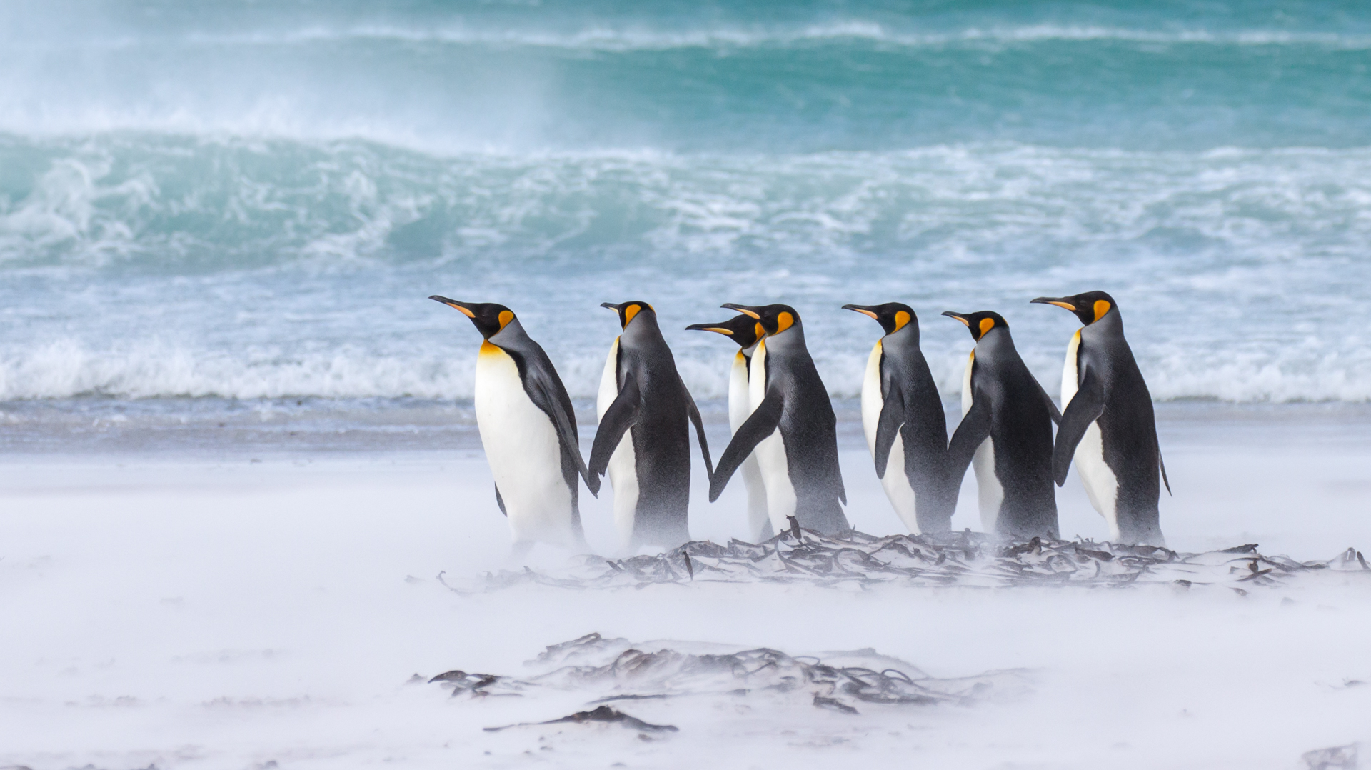 Emperor penguin parents with chick