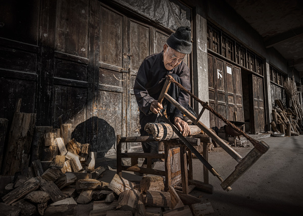 Chen, Yu'e | Ninety-year-old elder cutting firewood | Ver | |
